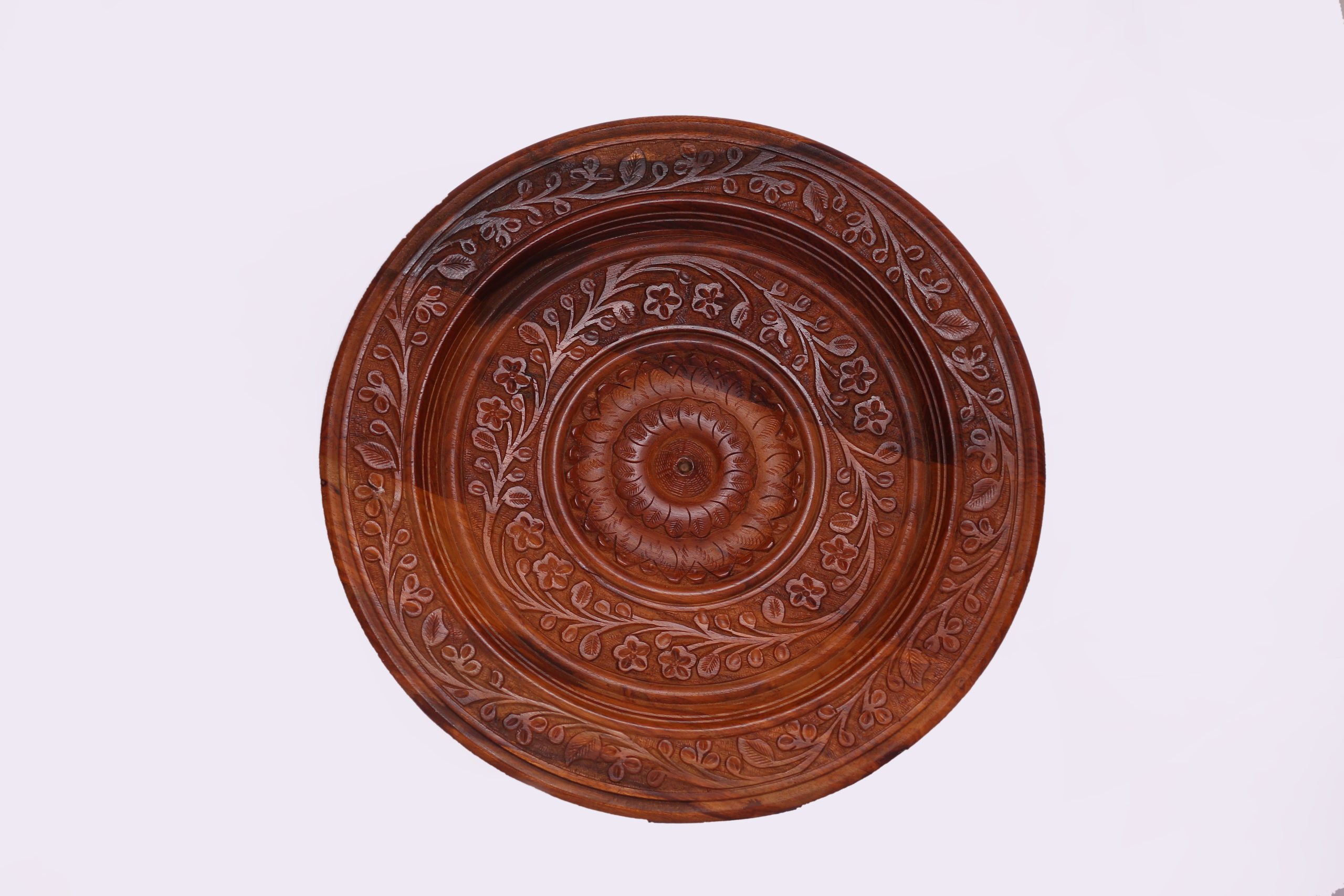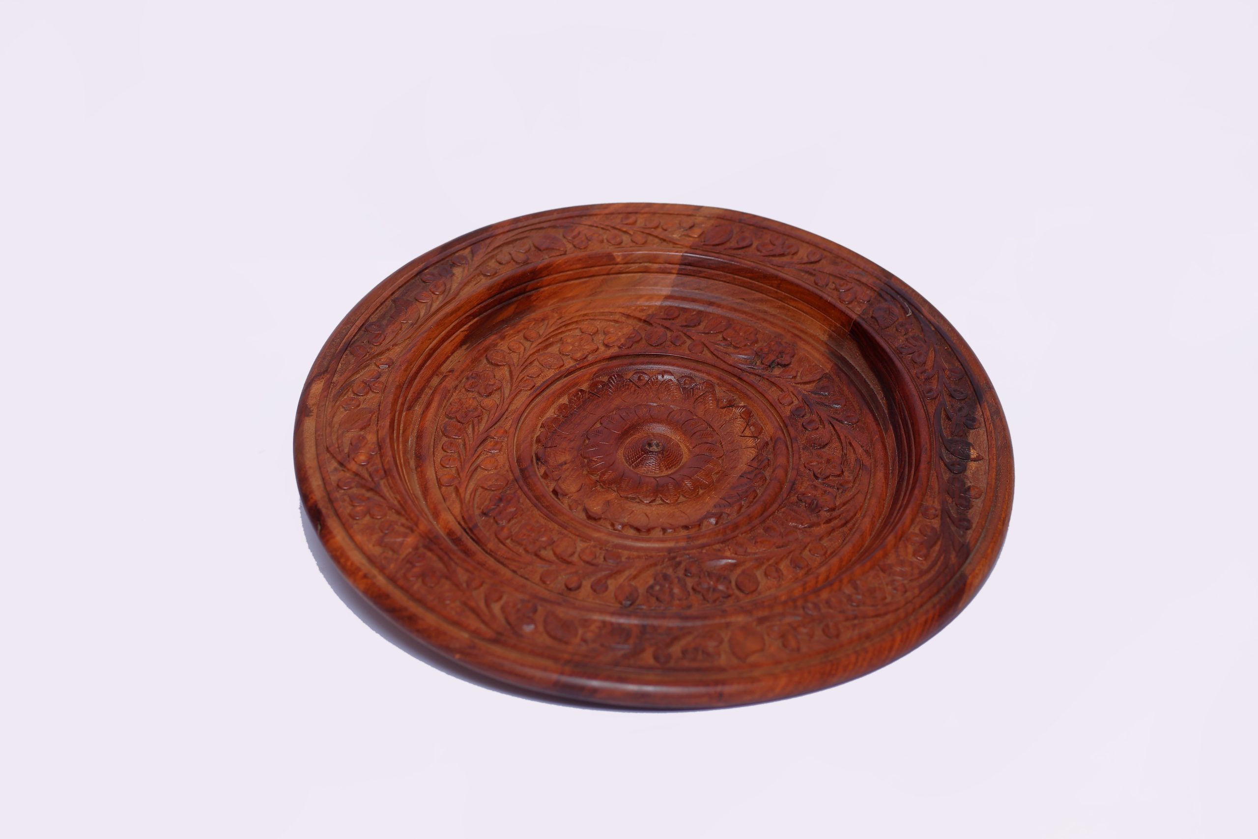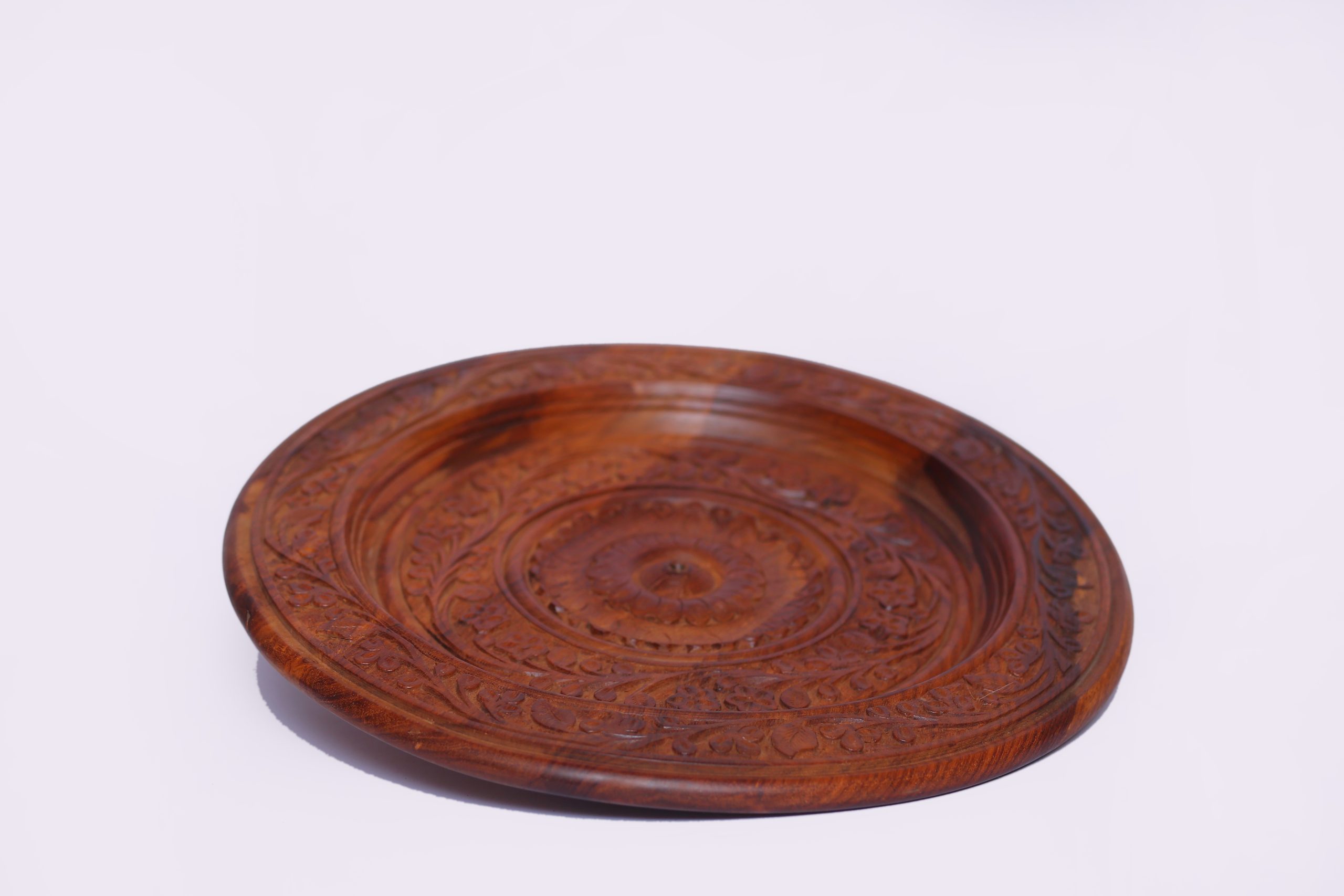 This Handmade Wooden Carving Art Plate combines elegance and functionality. Perfect for home décor or serving dry food, this multipurpose wooden plate features intricate hand-carved designs with a smooth, shiny finish. Made from natural wood, it adds a rustic yet refined touch to any space. Use it as a decorative tray or a serving platter for snacks, fruits, or dry foods. Its durable and eco-friendly design makes it ideal for both display and everyday use.